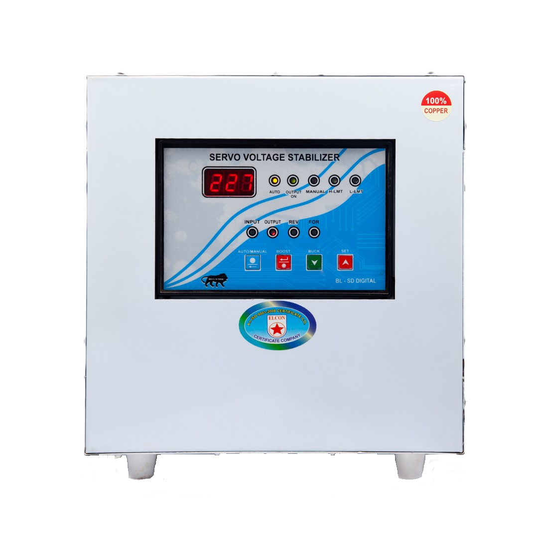 Built for India's harsh grid — correcting from 130V to 290V, where standard branded stabilizers typically only cover 160V–260V. That extra 40V range means the difference between uptime and machine failure.